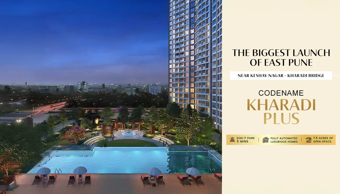 Introducing Codename Kharadi Plus At Puravankara Atmosphere, Near Keshav Nagar – Kharadi Bridge, Pune. Experience a poetic blend of nature and luxury at Codename Kharadi Plus At Puravankara Atmosphere — a sanctuary designed for soulful living. Spread across 10 acres with 75% open spaces, the project features over 2 acres of lush greenery at both the ground and podium levels, offering 50+ world-class amenities. Located in East Pune’s most coveted address, this development lies at the crossroads of Koregaon Park, Kharadi, and Magarpatta — one of Pune’s fastest-growing residential zones.